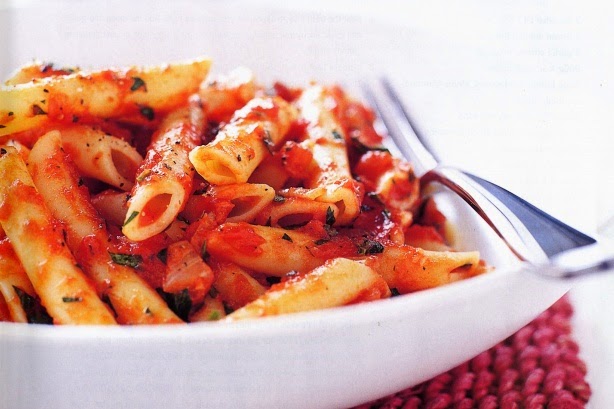 Ravno včeraj sem si skuhala eno izmed lastnih iznajdb - peresnike s paradižnikom in gorgonzolo.